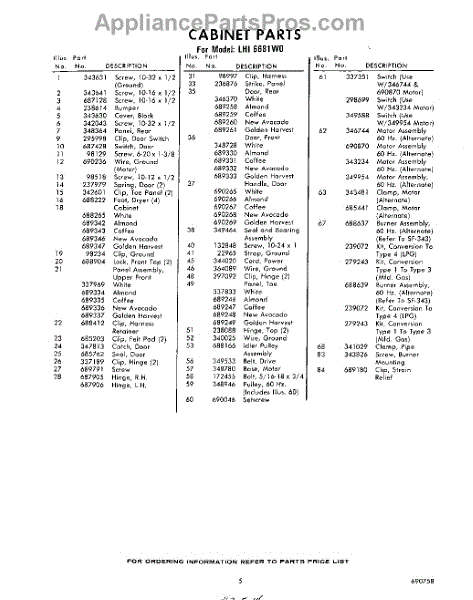 Parts for LHI6681W0