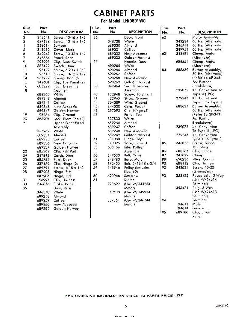 Parts for LHI9801W0
