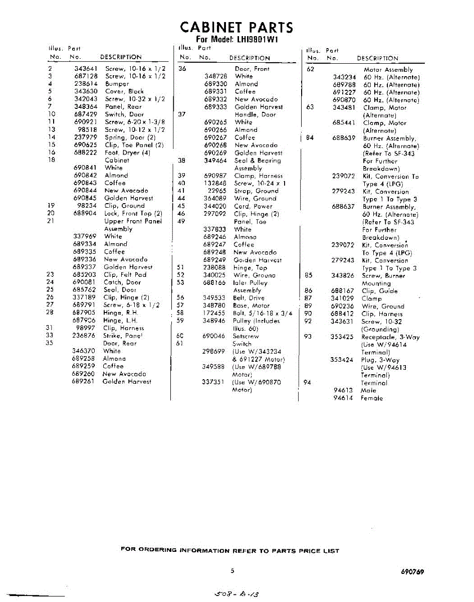 Parts for Whirlpool LHI9801W1: 05 - Section Parts