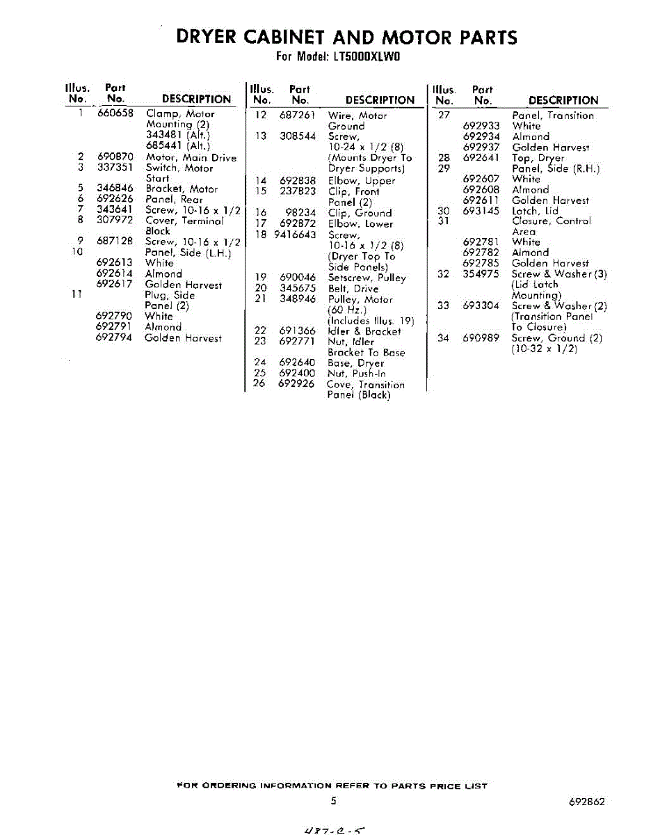 Parts for Whirlpool LT5000XLW0: 05 - Section Parts