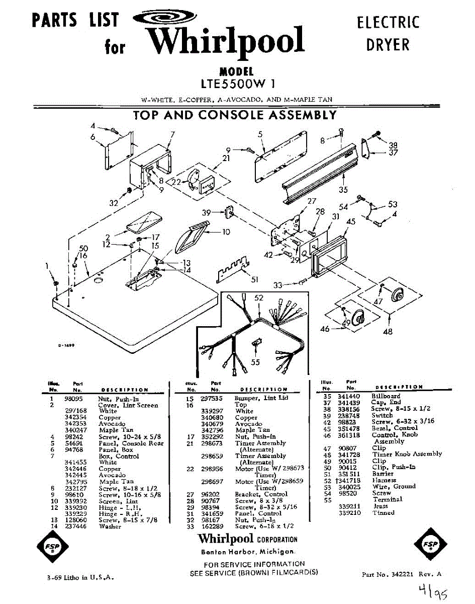 Parts for Whirlpool LTE5500W1: 01 - Section Parts