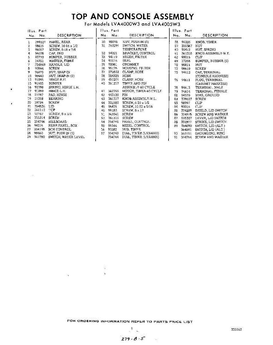 Parts for Whirlpool LVA4000W3: 05 - Section Parts