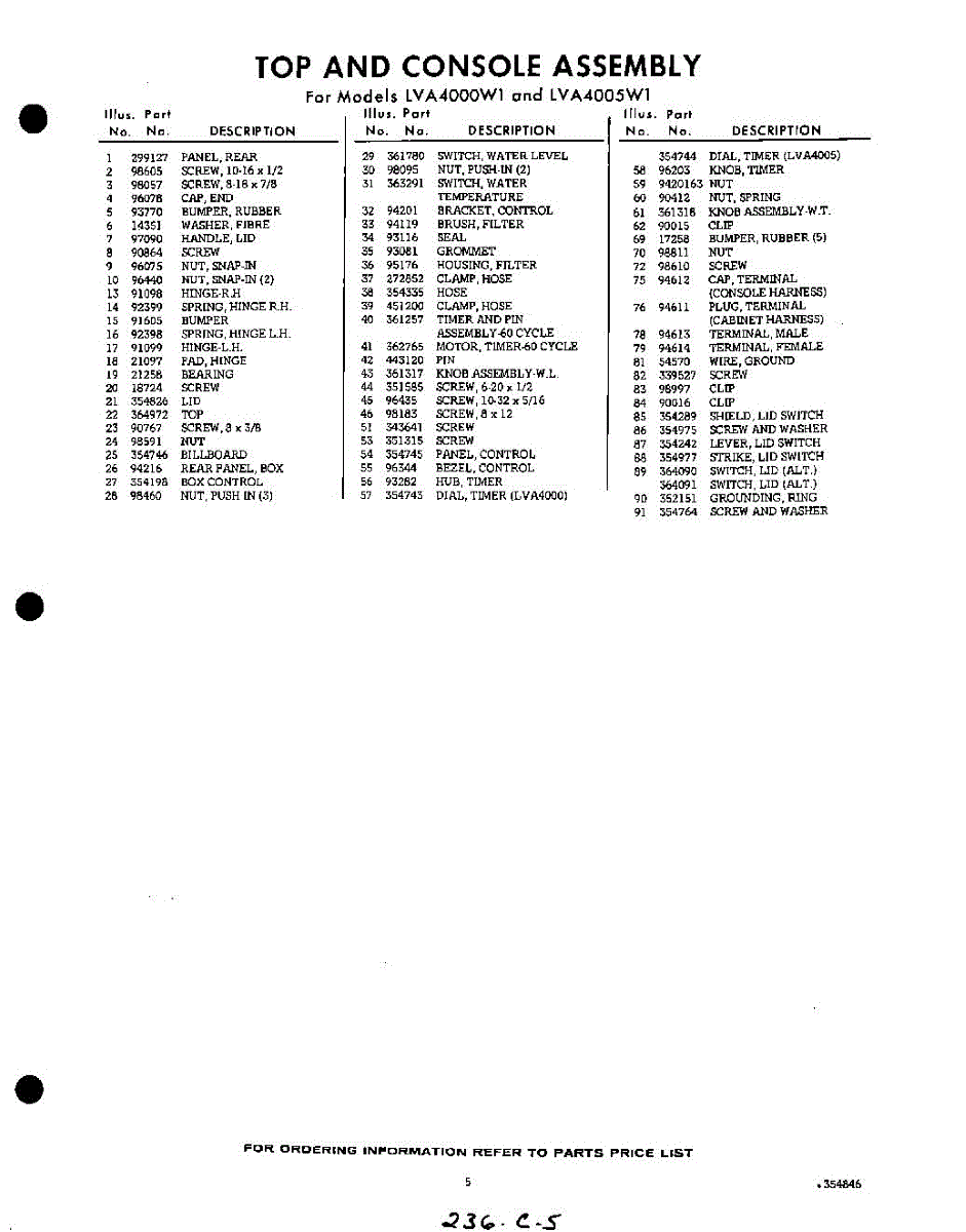 Parts for Whirlpool LVA4005W1: 05 - Section Parts