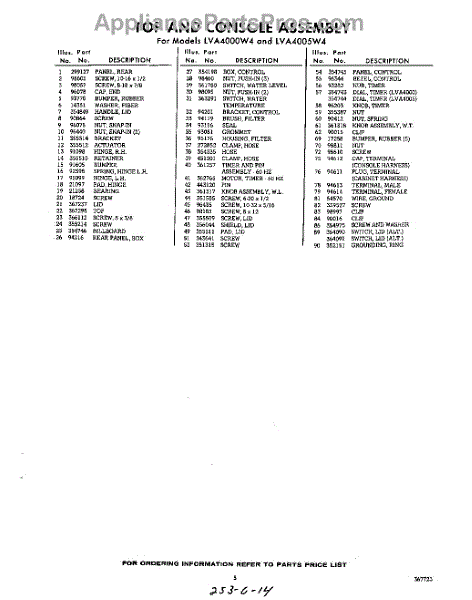 Parts for Whirlpool LVA4005W4: 05 - Section Parts