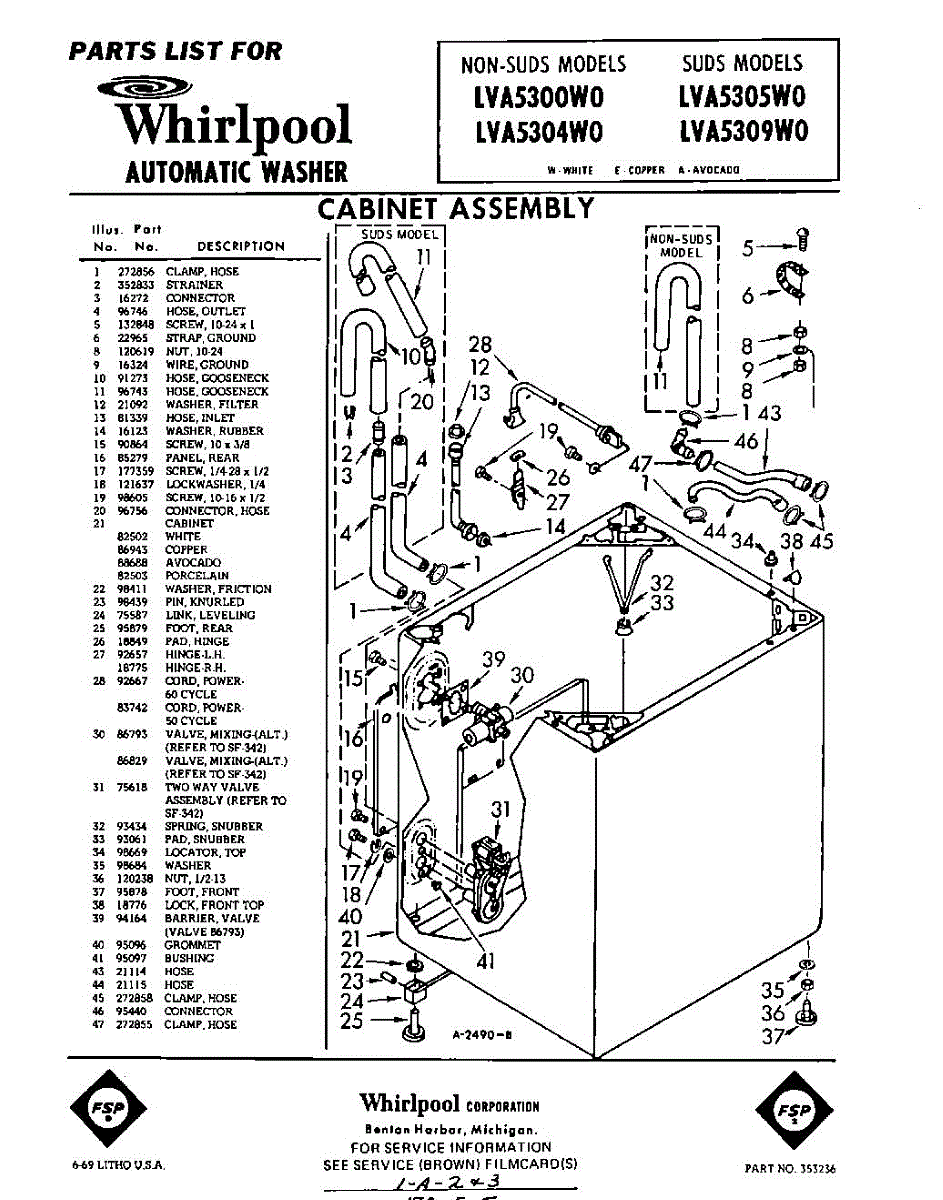 Parts for Whirlpool LVA5300W0: 01 - Section Parts