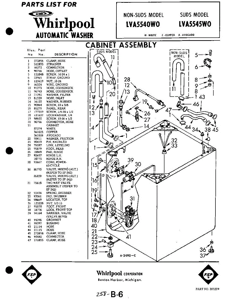 Parts for Whirlpool LVA5540W0: 01 - Section Parts
