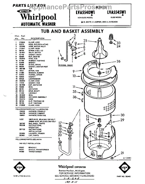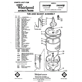 Parts for Whirlpool LVA5545W1: 01 - Section Parts