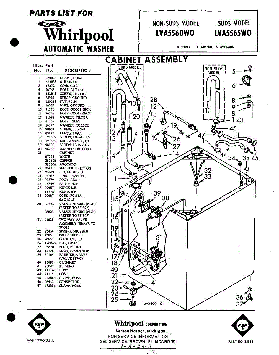 Parts for Whirlpool LVA5560W0: 01 - Section Parts