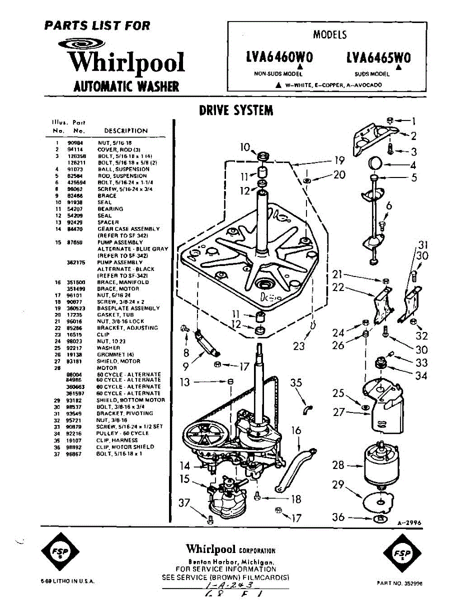 Parts for Whirlpool LVA6460W0: 01 - Section Parts