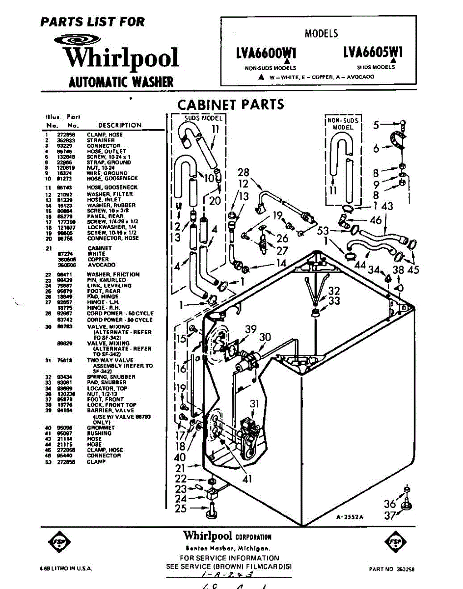 Parts for Whirlpool LVA6600W1: 01 - Section Parts