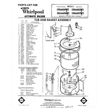 Parts for Whirlpool LVA6609W2: 01 - Section Parts