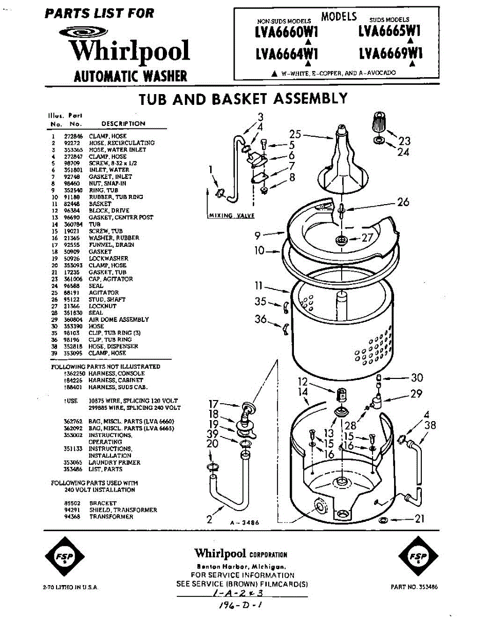 Parts for Whirlpool LVA6664W1: 01 - Section Parts