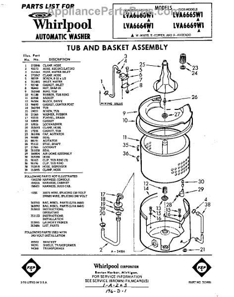 Parts for Whirlpool LVA6669W1: 01 - Section Parts
