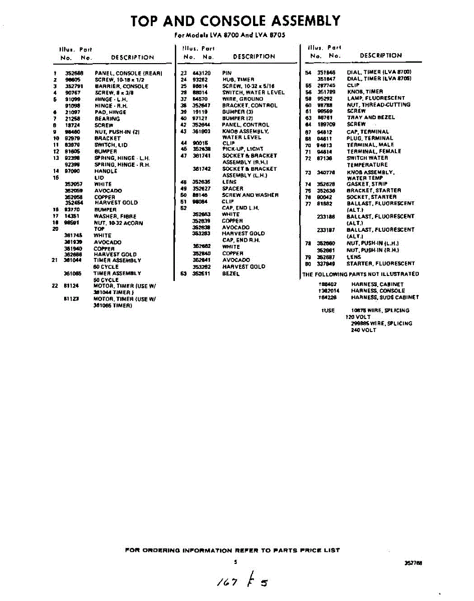 Parts for Whirlpool LVA8705W0: 05 - Section Parts