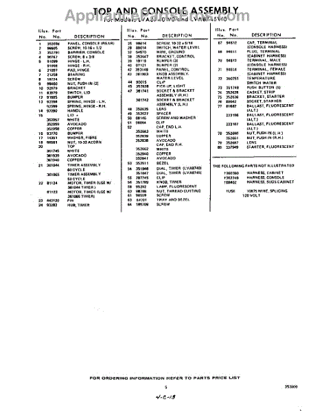 Parts for Whirlpool LVA8740W0: 05 - Section Parts
