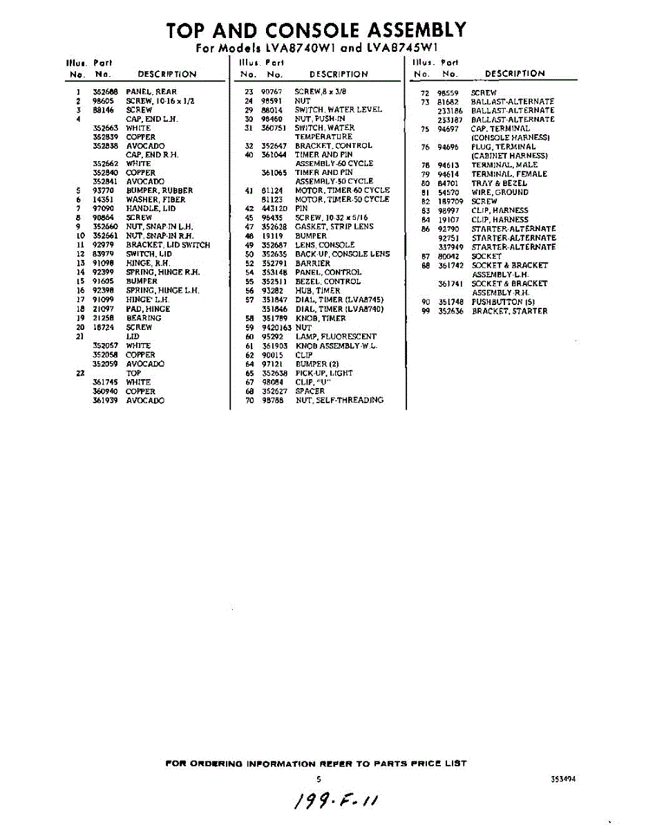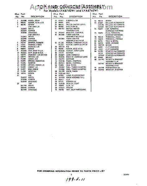 Parts for Whirlpool LVA8740W1: 05 - Section Parts