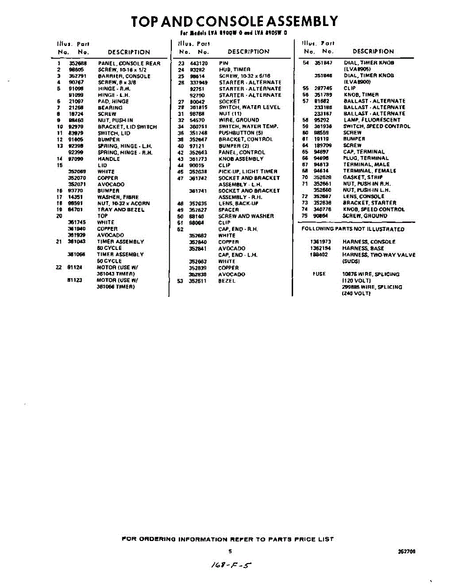 Parts for Whirlpool LVA8905W0: 05 - Section Parts