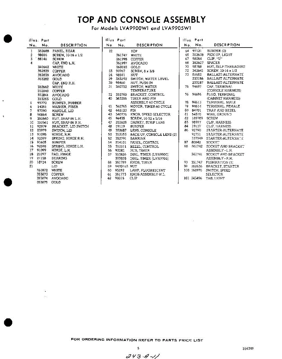 Parts for Whirlpool LVA9905W1: 05 - Section Parts