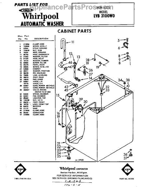 Parts for Whirlpool LVB3100W0: 01 - Section Parts