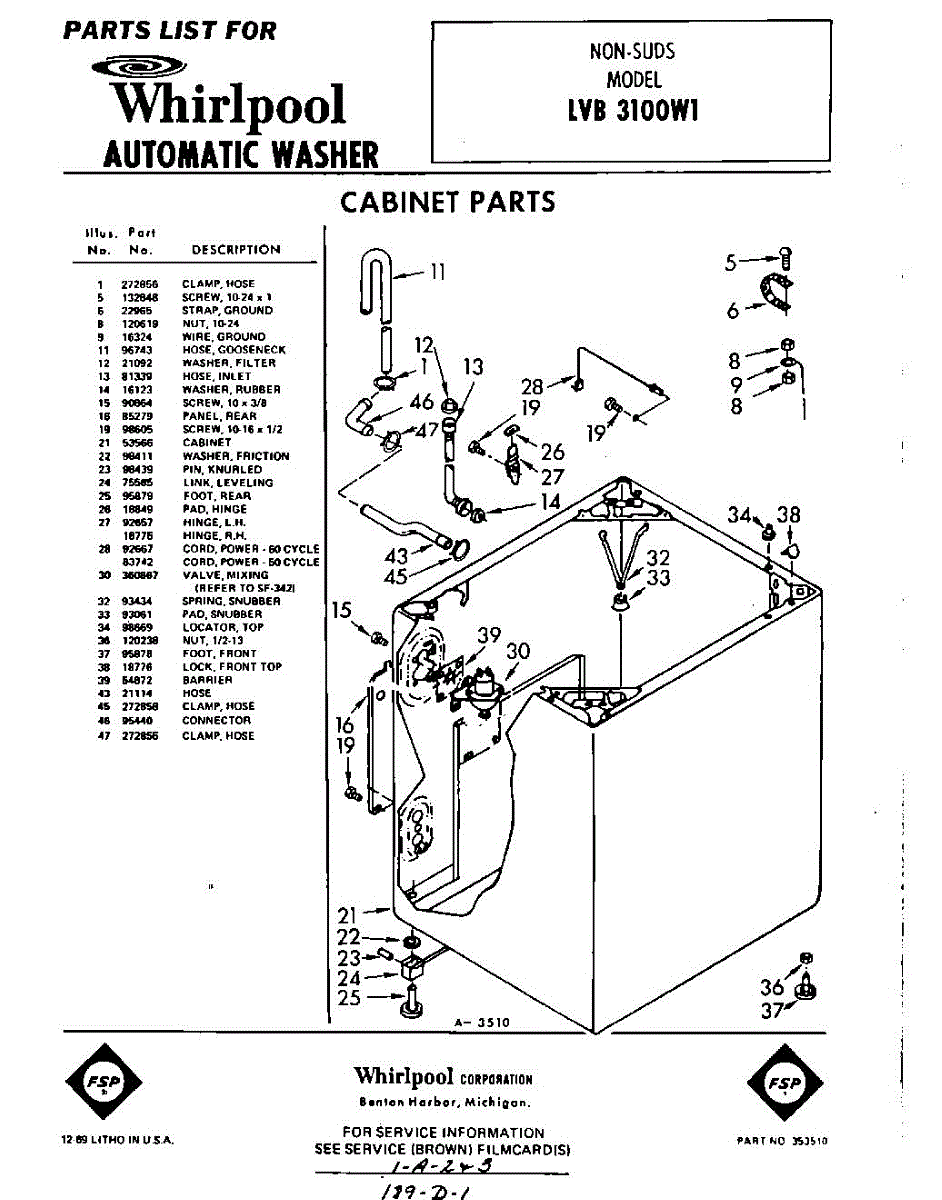 Parts for Whirlpool LVB3100W1: 01 - Section Parts