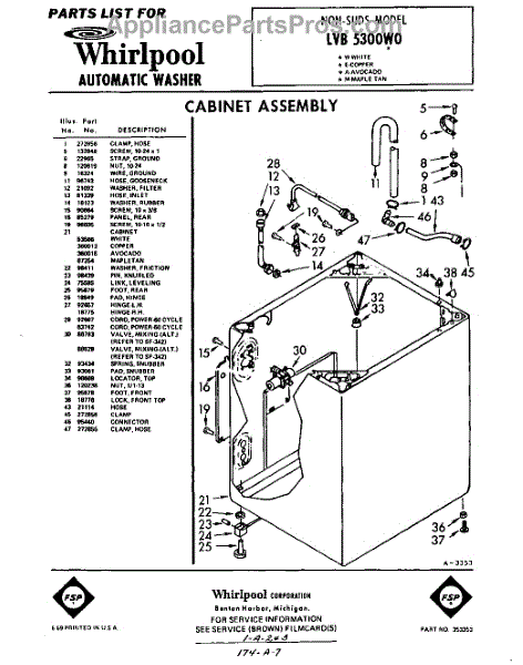 Parts for Whirlpool LVB5300W0: 01 - Section Parts
