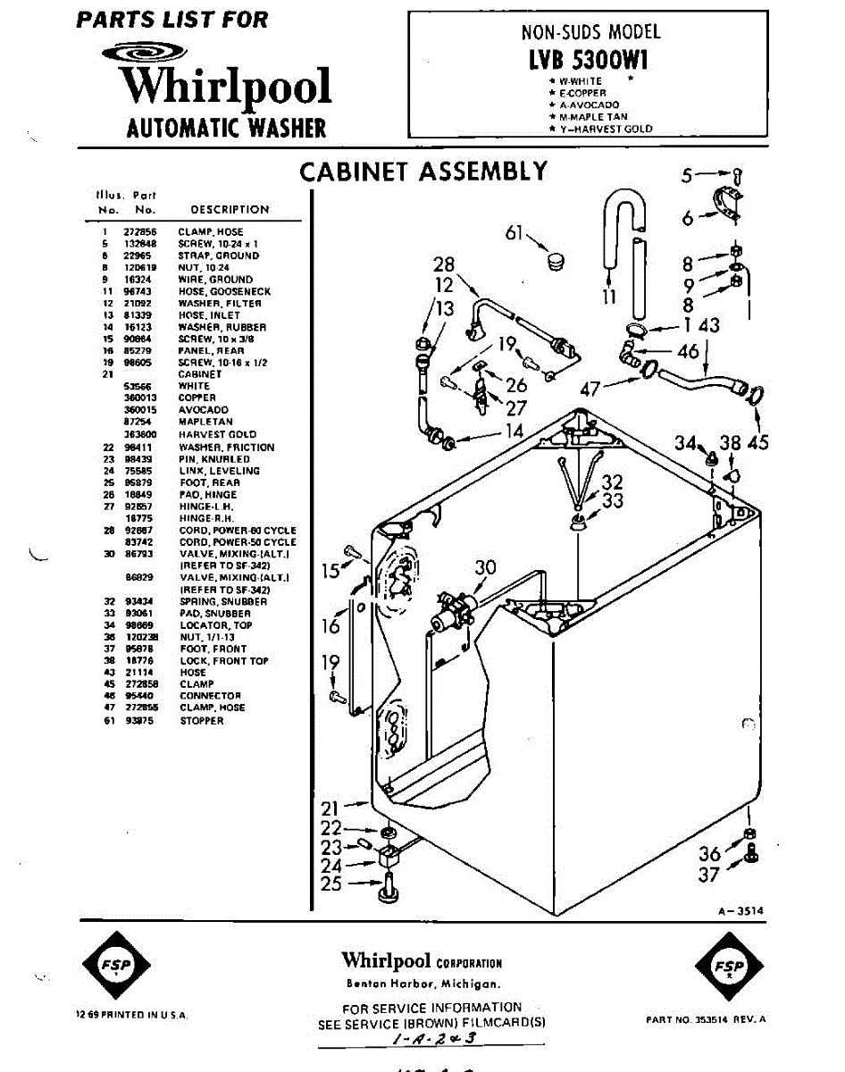Parts for Whirlpool LVB5300W1: 01 - Section Parts