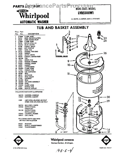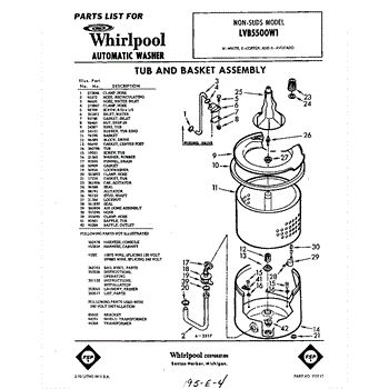 Parts for Whirlpool LVB5500W1: 01 - Section Parts