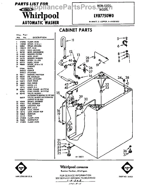Parts for Whirlpool LVB7750W0: 01 - Section Parts