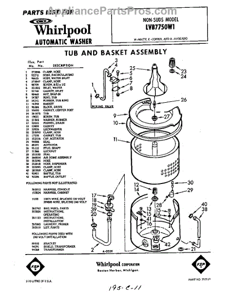 Parts for Whirlpool LVB7750W1: 01 - Section Parts