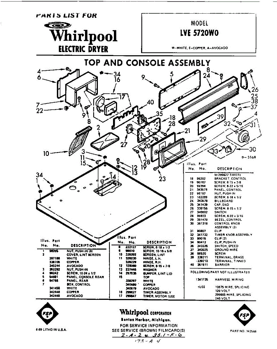 Parts for Whirlpool LVE5720W0: 01 - Section Parts