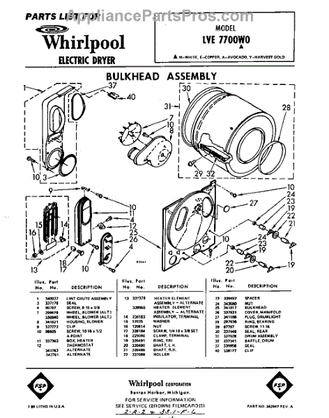 Whirlpool Dryer Parts