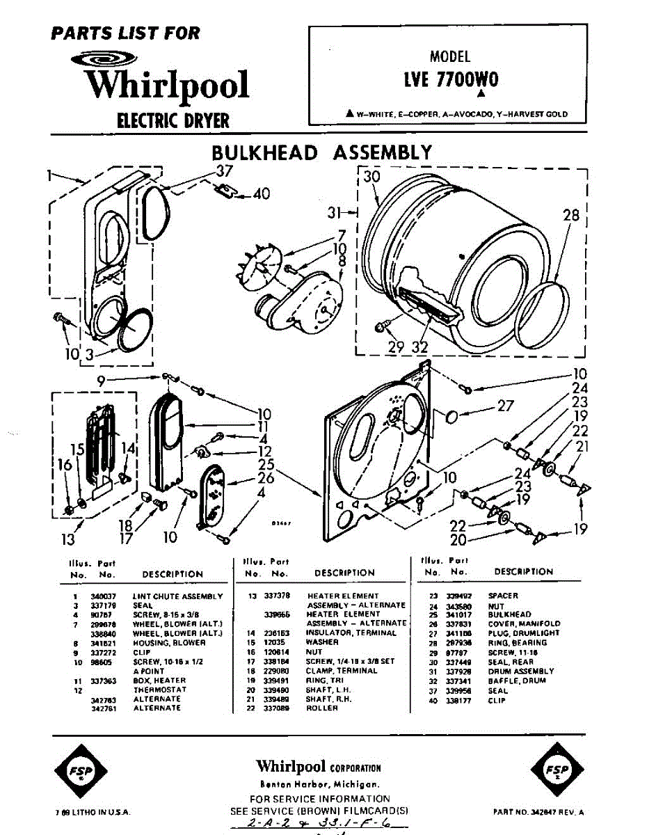 Parts for LVE7700W0