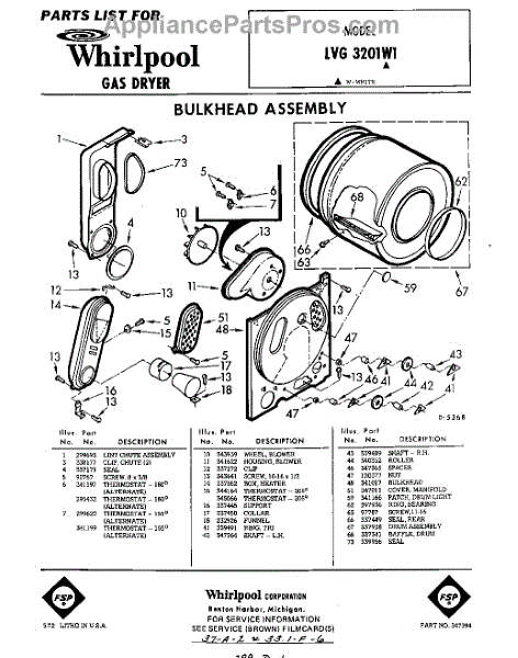 Parts for Whirlpool LVG3201W1: 01 - Section Parts