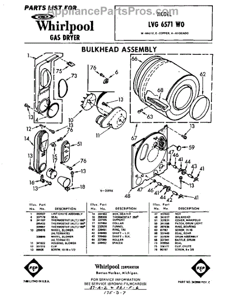 Parts for Whirlpool LVG6571W0: 01 - Section Parts