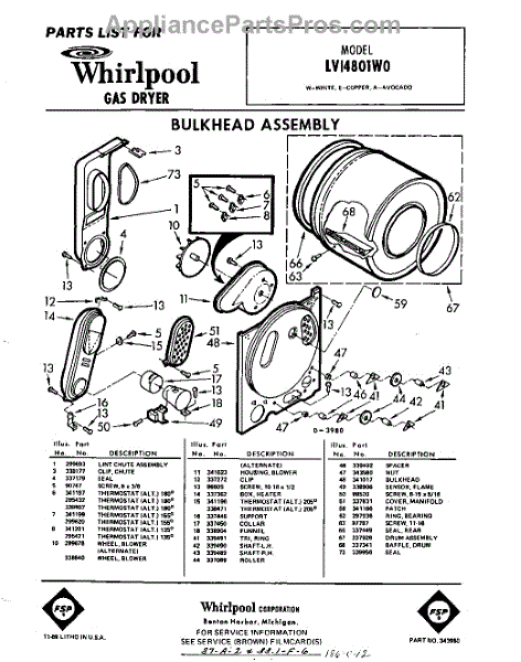 Parts for Whirlpool LVI4801W0: 01 - Section Parts