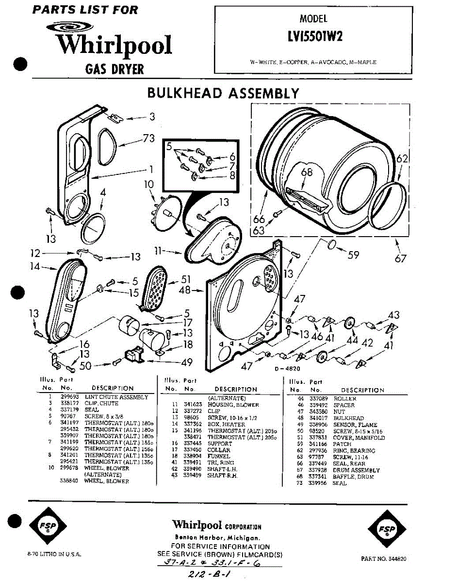 Parts for Whirlpool LVI5501W2: 01 - Section Parts