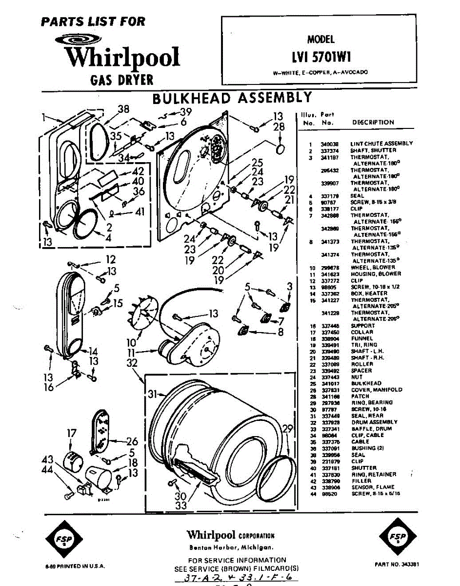 Parts for Whirlpool LVI5701W1: 01 - Section Parts