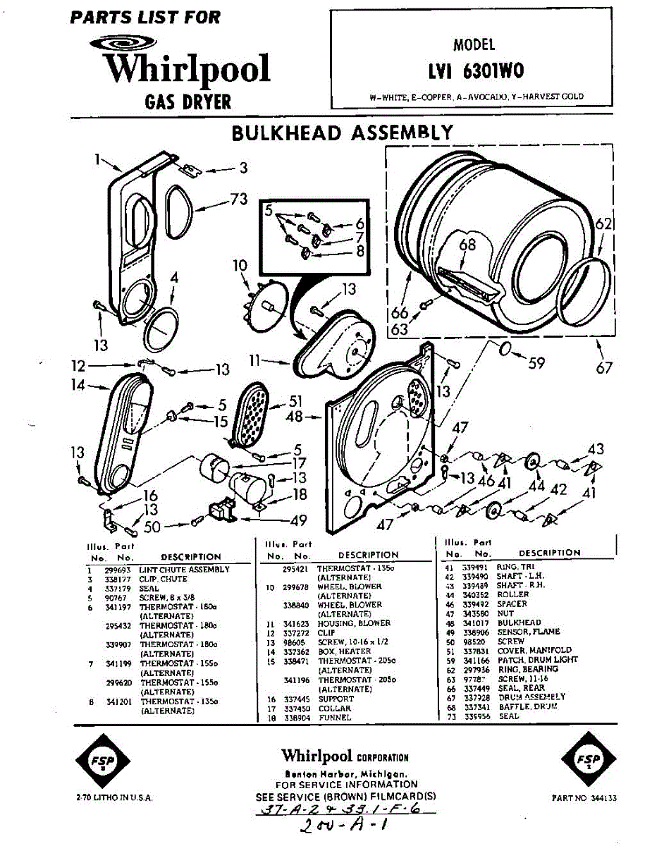 Parts for Whirlpool LVI6301W0: 01 - Section Parts