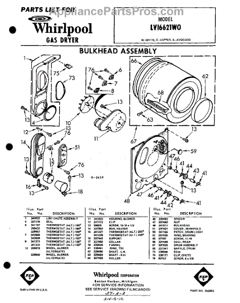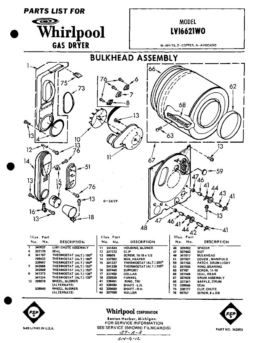 Parts for Whirlpool LVI6621W0: 01 - Section Parts