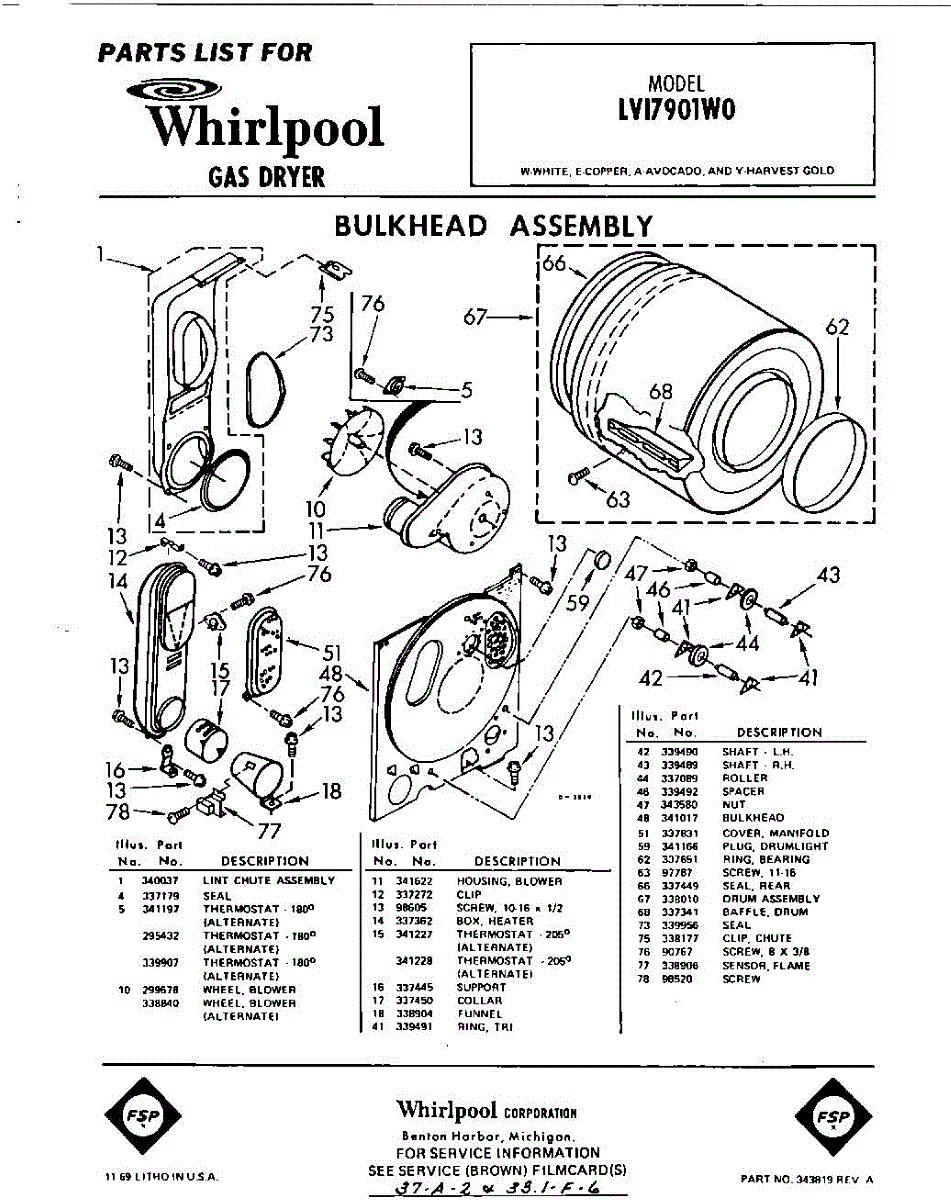Parts for Whirlpool LVI7901W0: 01 - Section Parts