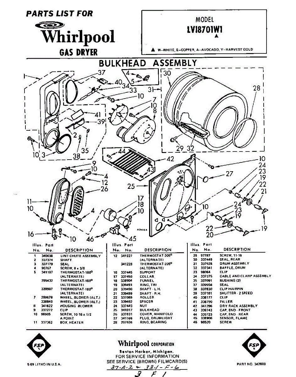 Parts for Whirlpool LVI8701W1: 01 - Section Parts