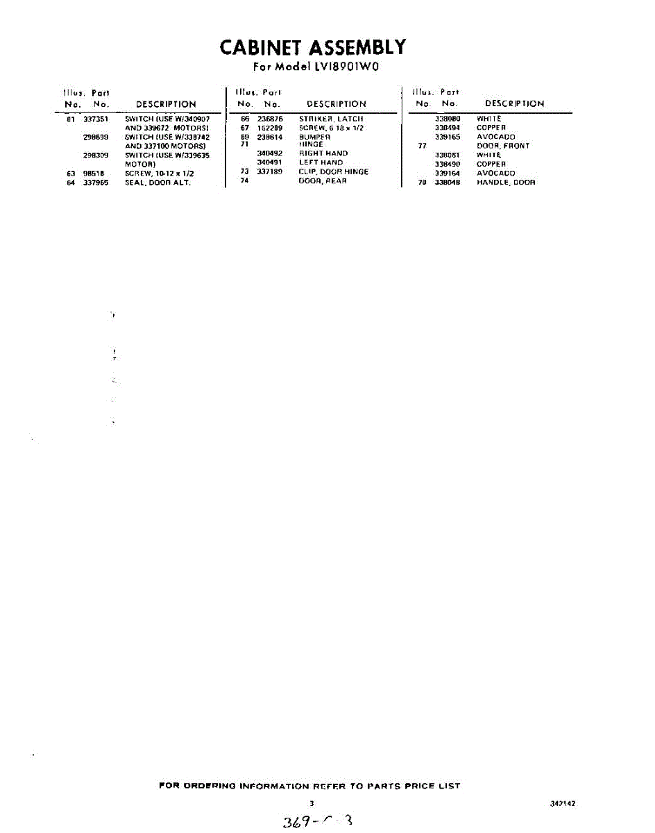Parts for Whirlpool LVI8901W0: 03 - Section Parts