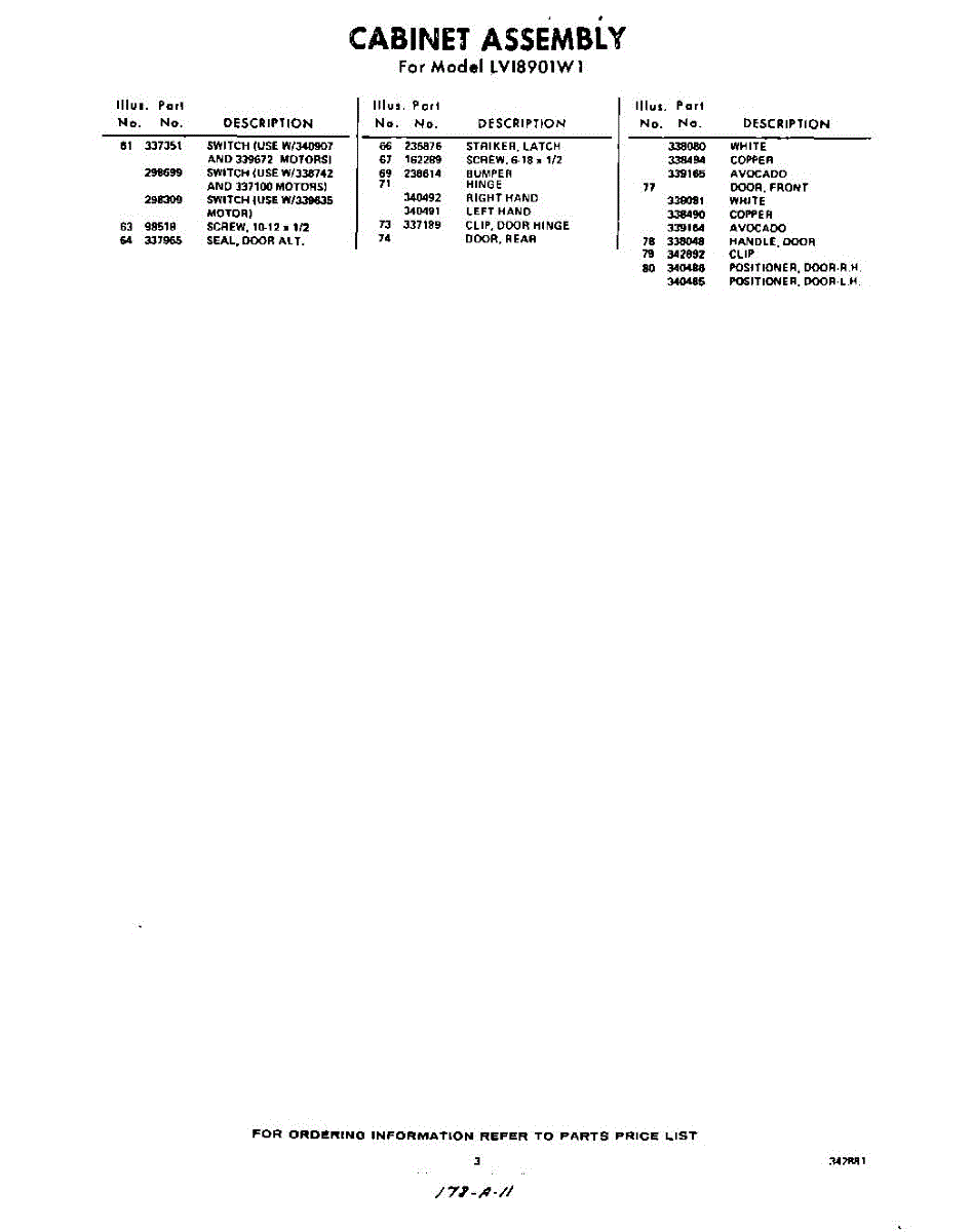 Parts for LVI8901W1
