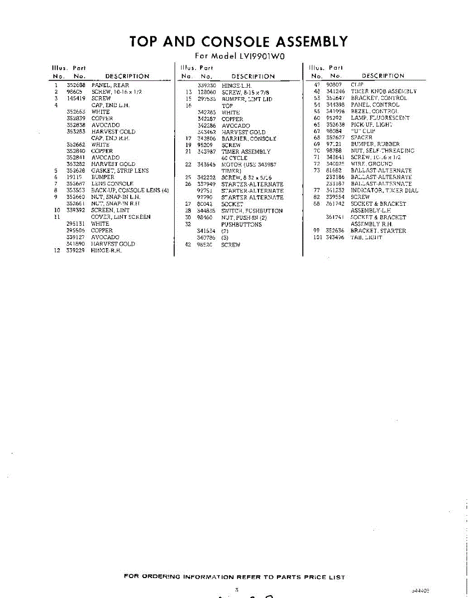 Parts for Whirlpool LVI9901W0: 03 - Section Parts