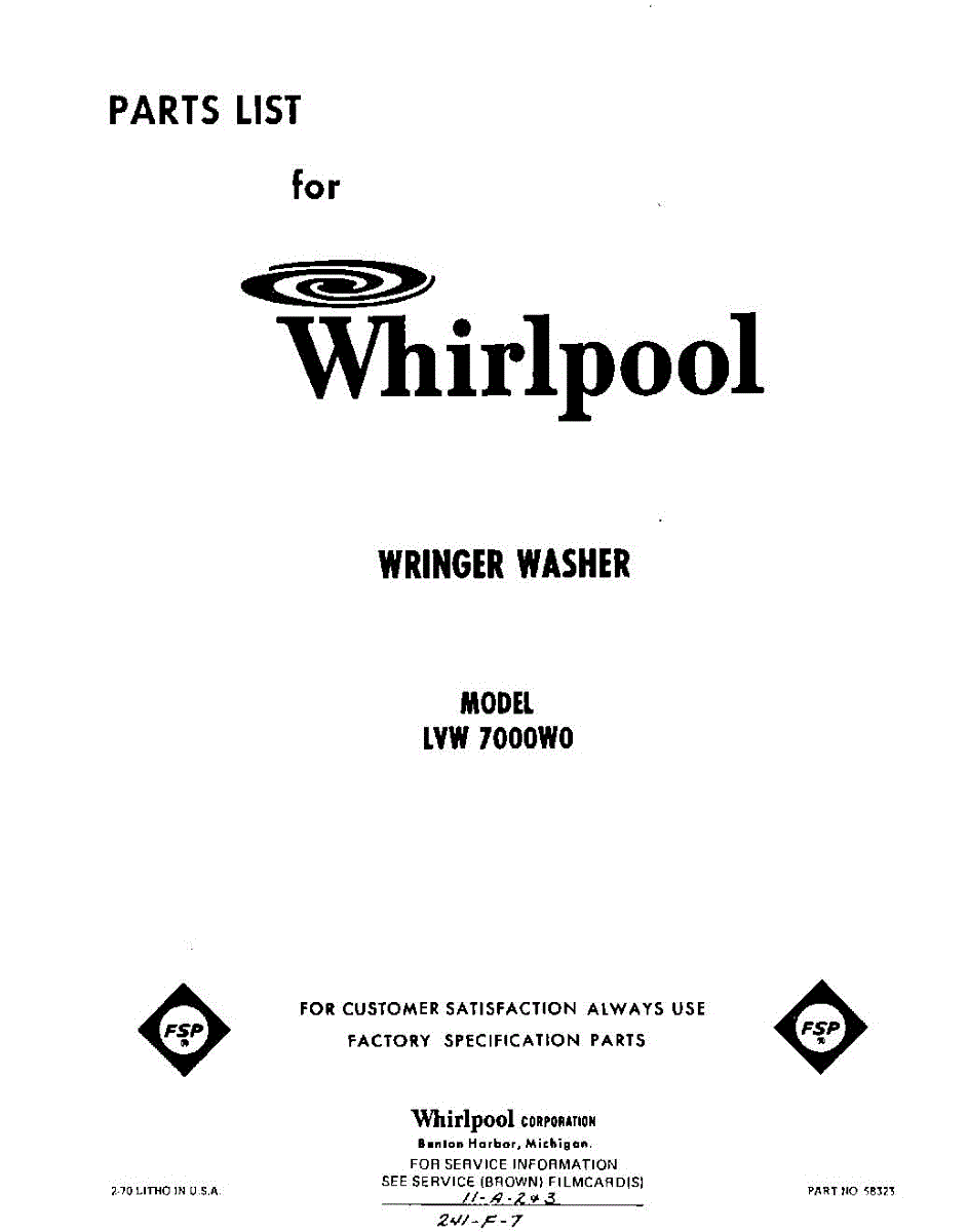 Parts for Whirlpool LVW7000W0: 01 - Section Parts
