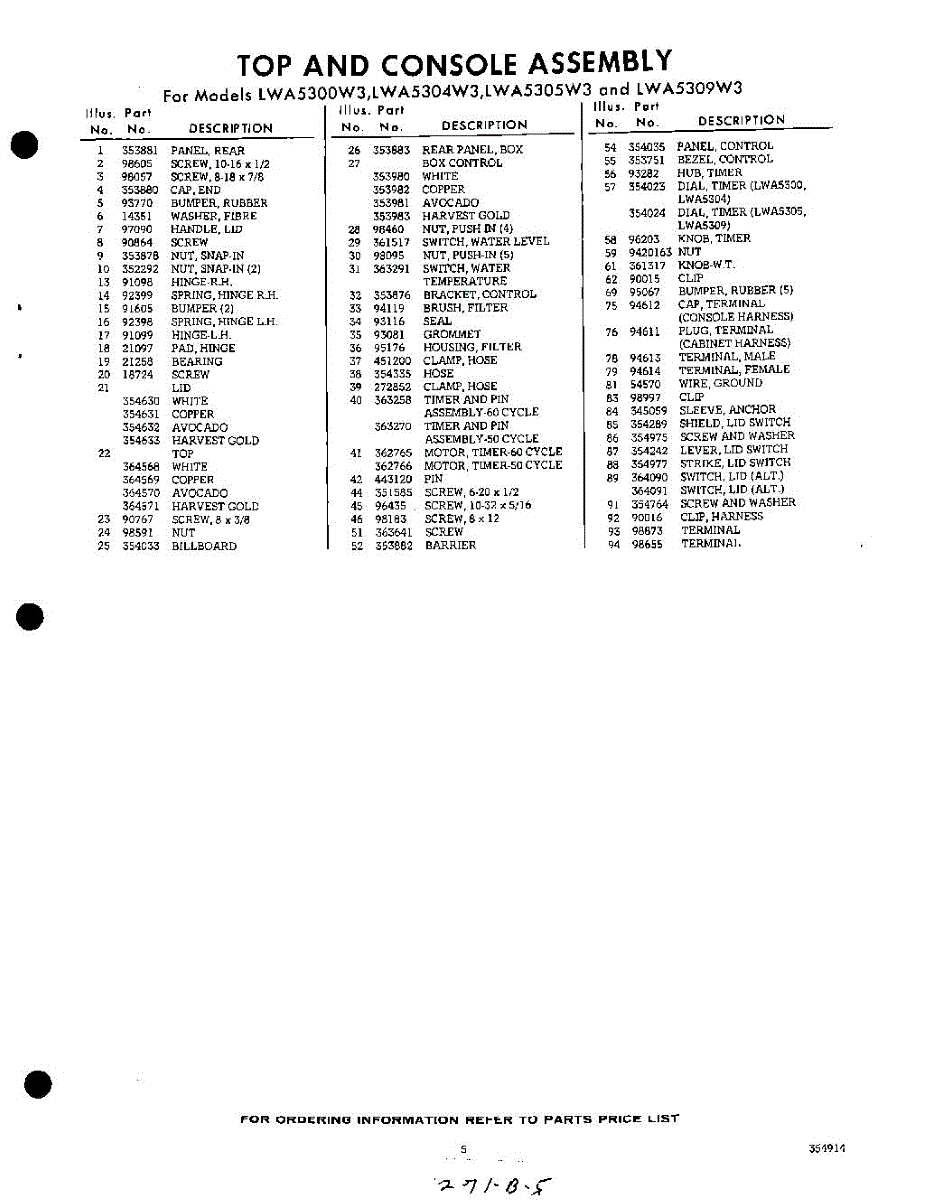 Parts for Whirlpool LWA5300W3: 05 - Section Parts