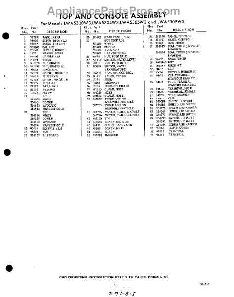 Parts for Whirlpool LWA5305W3: 05 - Section Parts