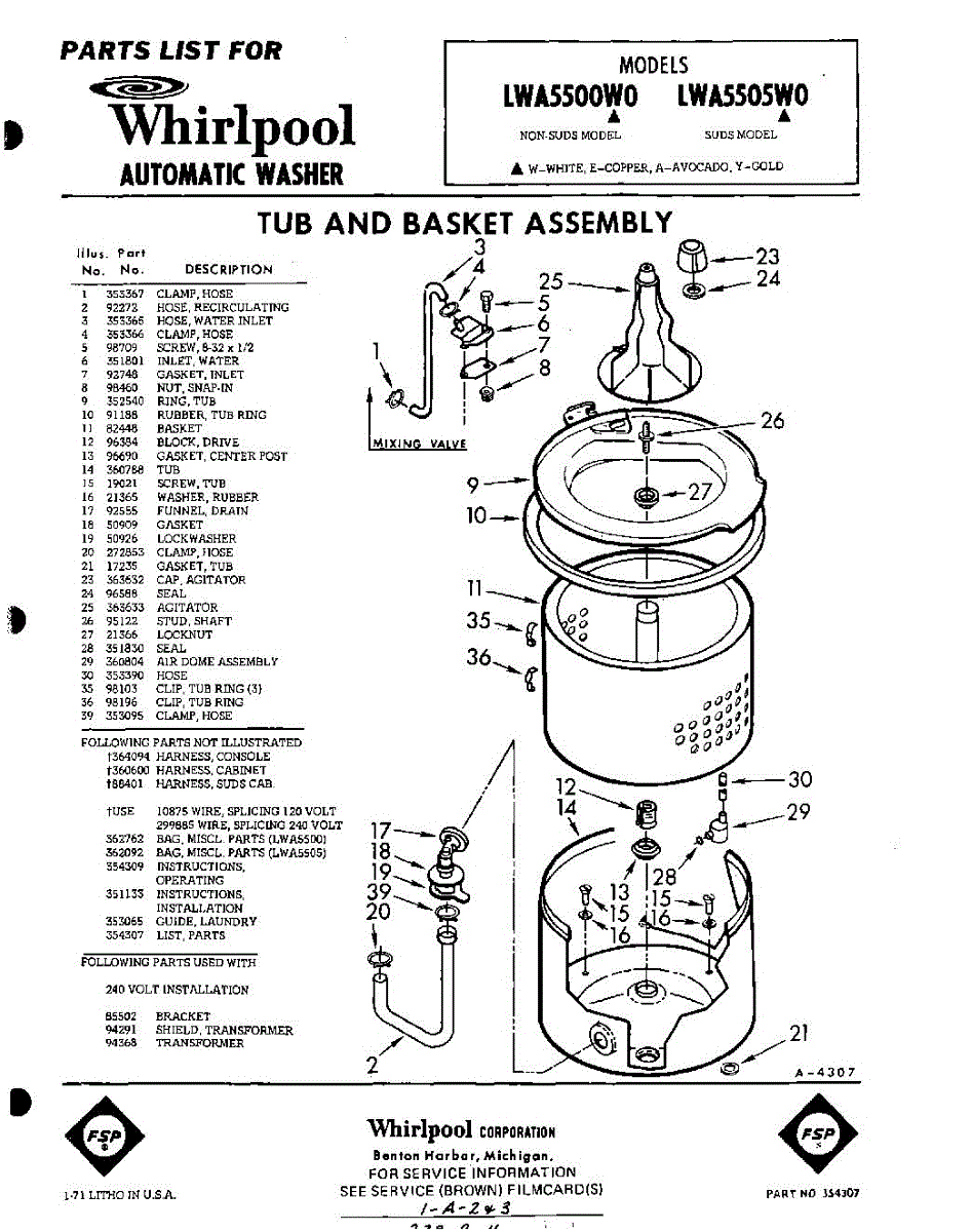 Parts for Whirlpool LWA5505W0: 01 - Section Parts