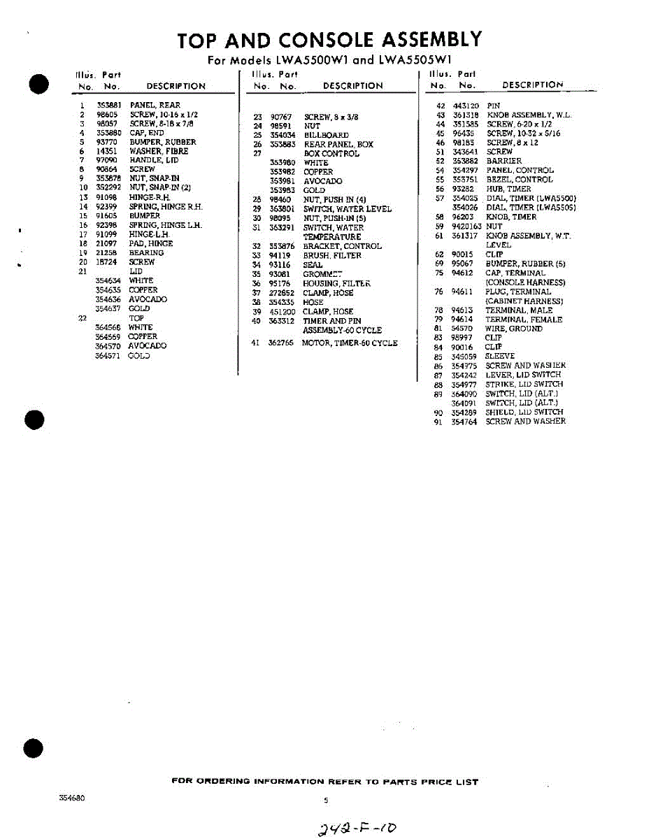 Parts for Whirlpool LWA5505W1: 05 - Section Parts