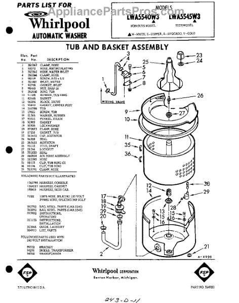 Parts for Whirlpool LWA5545W3: 01 - Section Parts